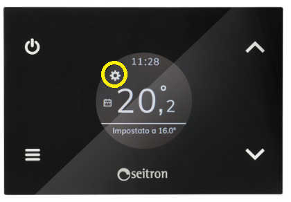 1. Accedere al menù del termostato tramite il tasto in basso a sinistra
