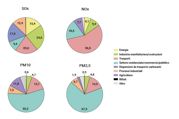In the period 1990-2018 the emission of PM10 had a decrease of approximately 40% . If we look at the data by sector, the sharpest decline occurred precisely in the industrial sector with a -71% in industrial combustion processes, -49% in productive ones and -98% in the energy sector. As regards PM2.5 the percentages are -67% for combustion processes and -97% for production and energy.